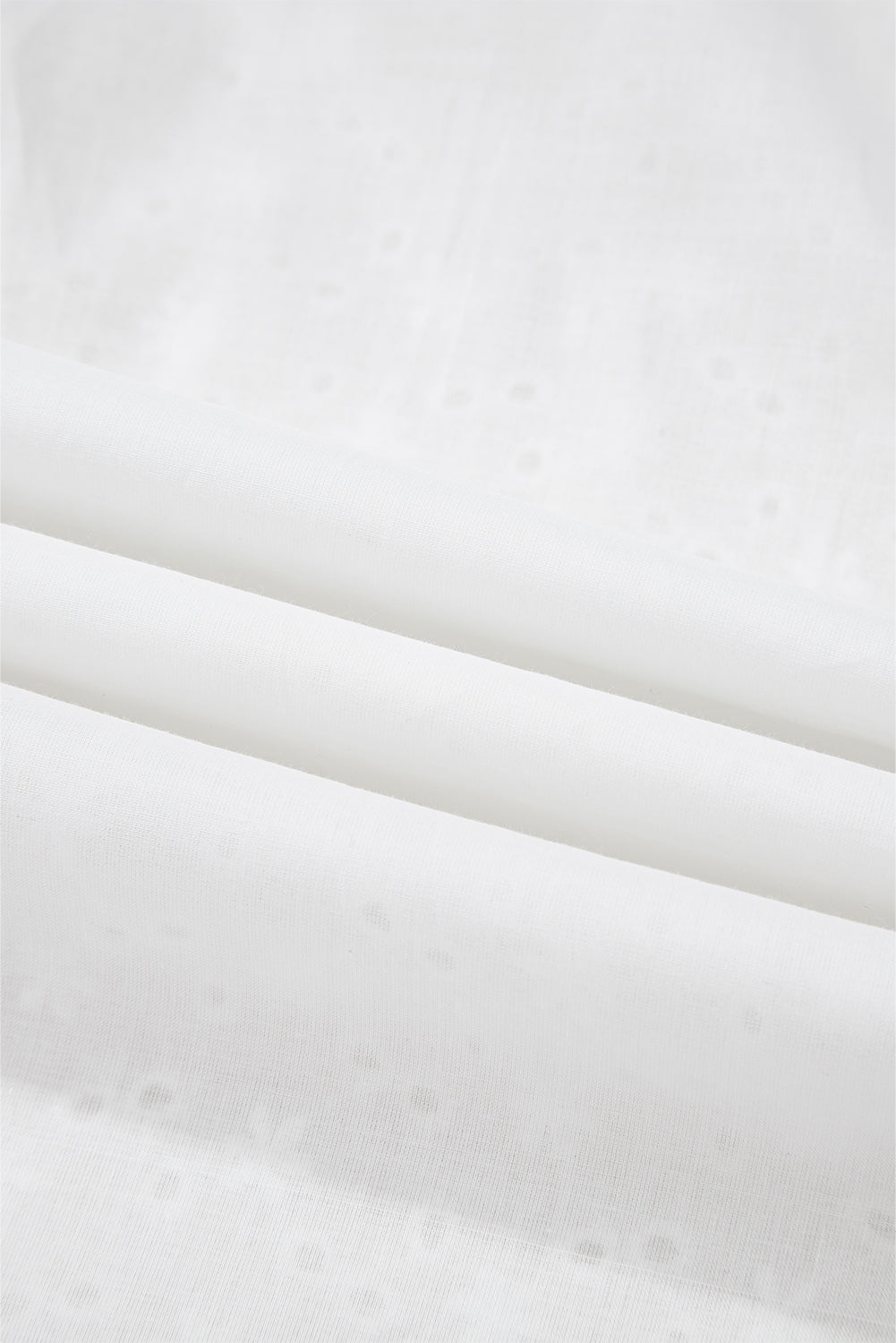 Embroidered Eyelet Collared Neck Long Sleeve Shirt